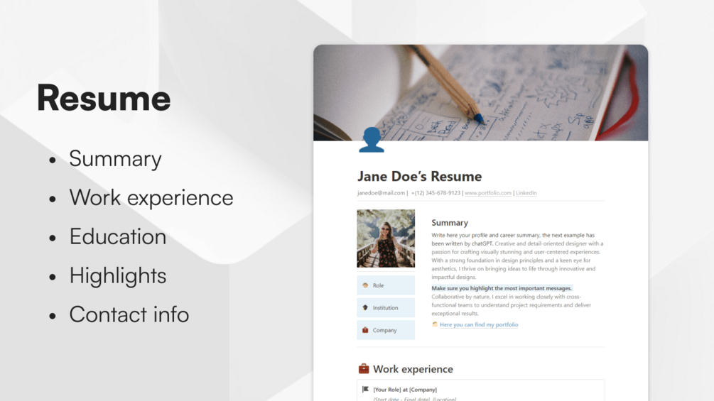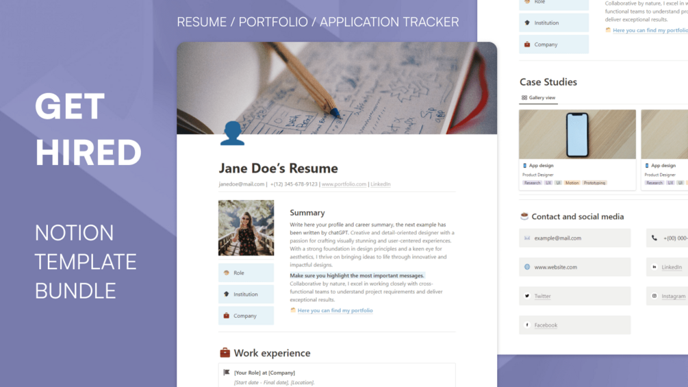 With this bundle, you take: Portfolio and Case studies templates, Resume Template, Applications tracker, How to use notes.